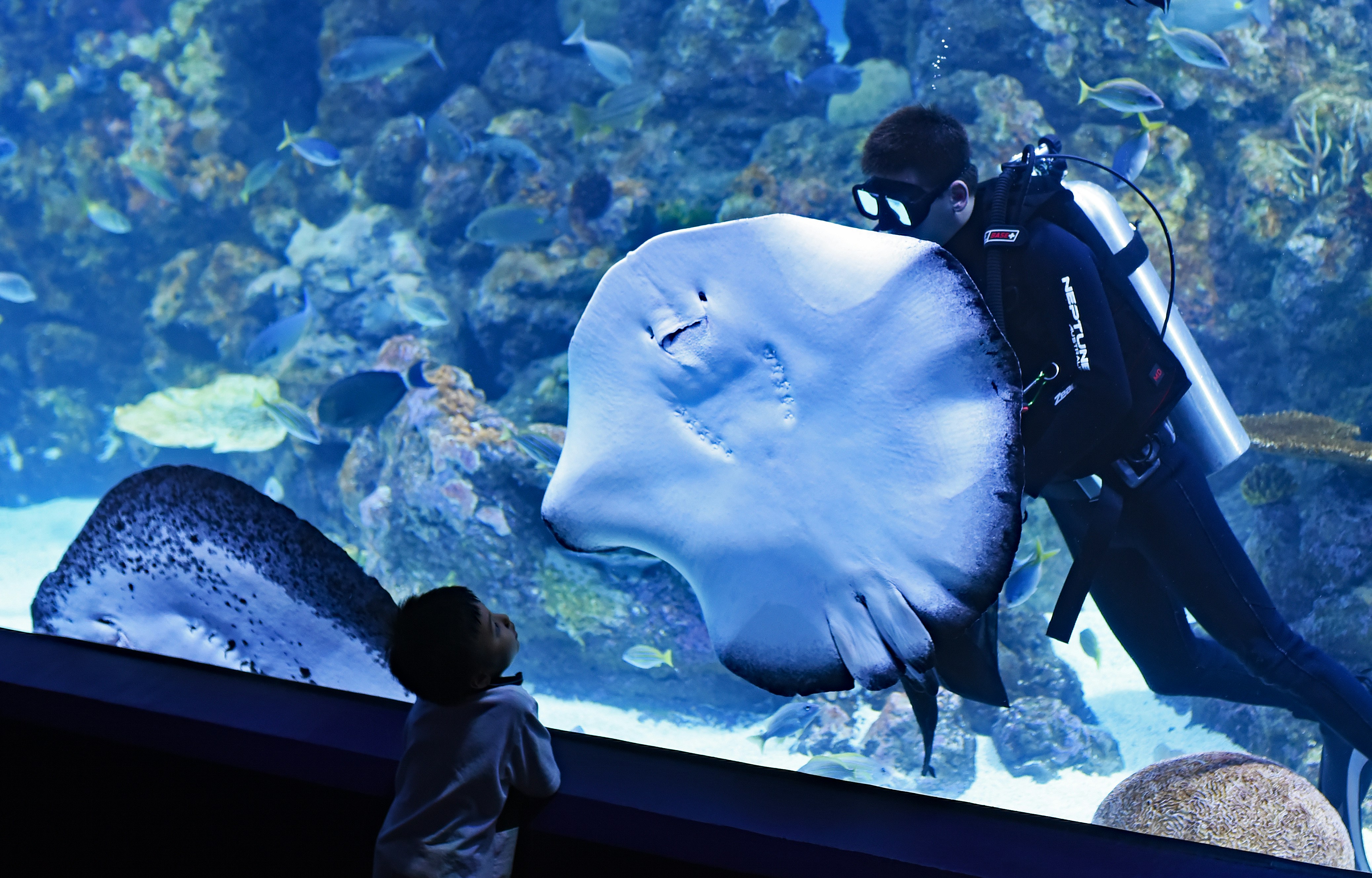 頭上を魚たちが泳ぐ迫力のトンネル。