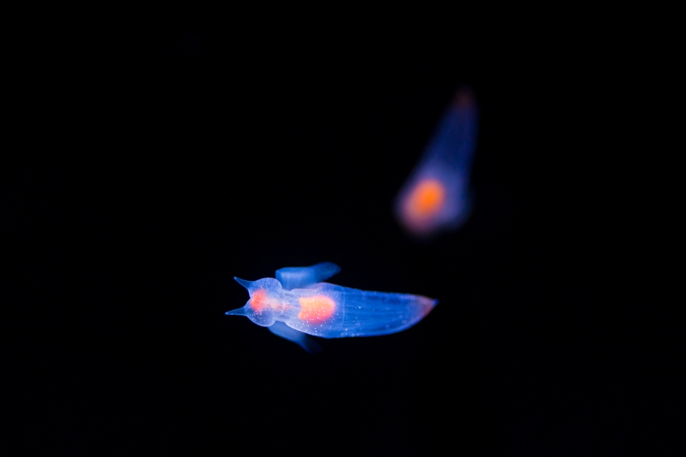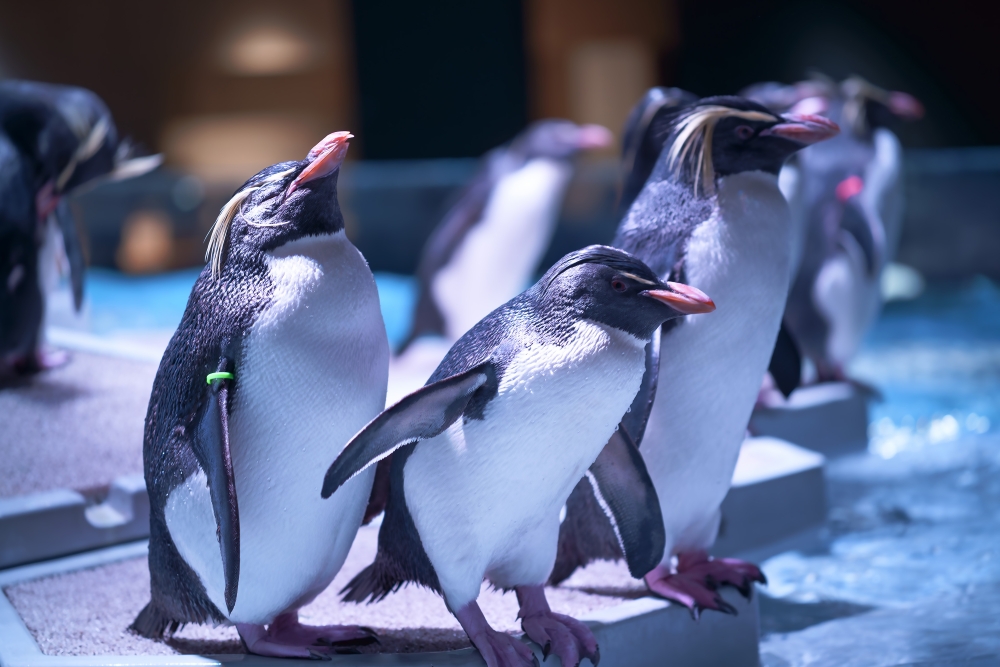 夜だけの特別な雰囲気。17時から館内の照明と音楽が変わり、神秘的な夜の海が静かに現れます。